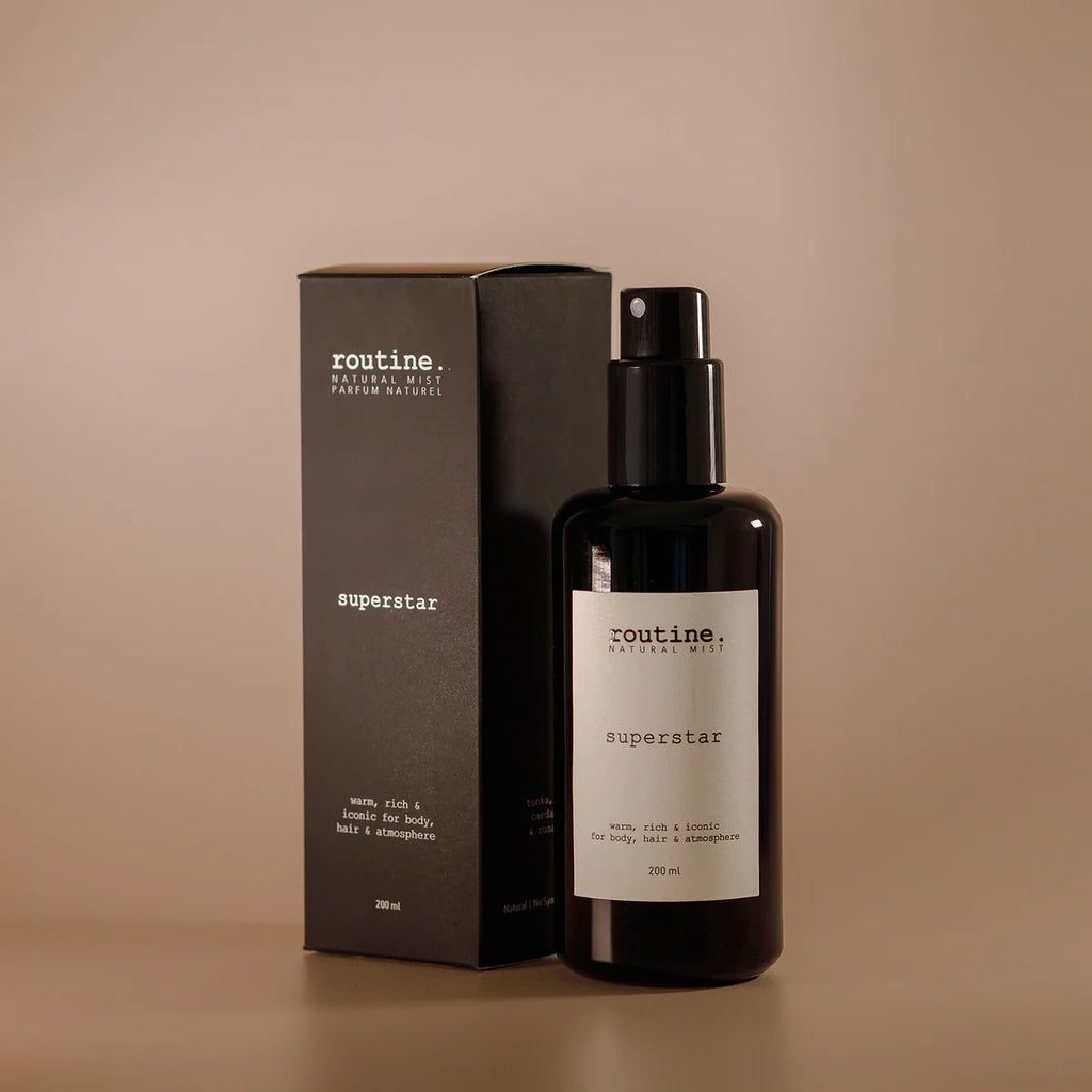 Whether you use the mist on your body, in your hair, on your pillow or simply in the air is entirely up to you. This alcohol-free and water-based mist can be used to spread delightful scents where you wish to. Routine's wildly bespoke blends are 100% natural, botanical, and specially formulated for all your places like closets, cars and bars (with stops at all the beautiful places in between).