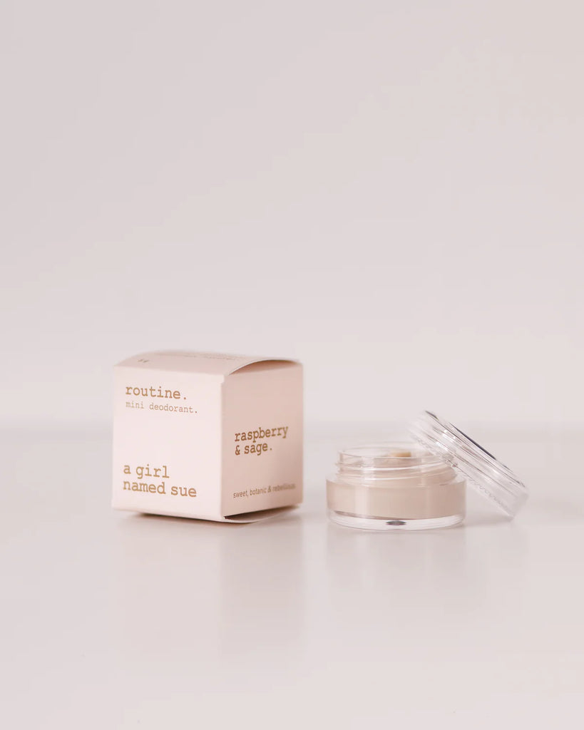 cocos nucifera oil (kokos), magnesium hydroxide, kaolin (ler), zea mays starch (majs), maranta arundinacea root powder (arrowroot), sodium bicarbonate (natron), cera alba (bivoks), butyrospermum parkii butter (sheasmør), tocopherol (e-vitamin), helianthus annuus seed oil (solsikke), olea europaea fruit oil (oliven), theobroma cacao seed butter (kakao), rosmarinus officinalis leaf extract (rosmarin), cetearyl olivate (og) sorbitan olivate (naturlig oliven baseret stabilisator), brassica glycerides (emulgator af grøntsager), calendula officinalis flower extract (morgenfrue), caprylic/capric triglyceride (kokos, glycerin), salvia sclarea oil (broget salvie), aroma (naturlige og økologiske smagsolier: hindbær), linalol*, limonene*. * naturligt forekommende i æterisk olie.