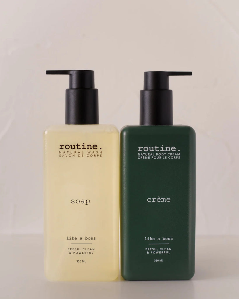 Pump sæben ud i hænderne og fordel på kroppen. Eller på din vaskesvamp eller hvad du bruger til at rengøre din krop med, for ekstra skummende effekt. Skyl. Slut af med Routines body creme, for at holde på fugten, og for at forstærke din signatur duft.